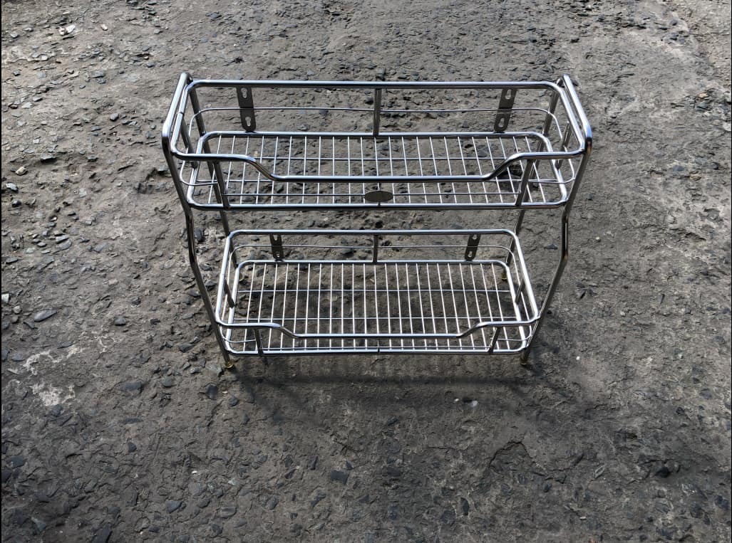 KỆ GIA VỊ INOX SUS 304 CẦU THANG ỐNG 2 TẦNG SIZE 15x20x50 CM KHÔNG GỈ SÉC CAO CẤP